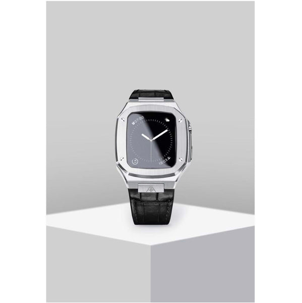 Apple Watch Case -Silver Black leather strap